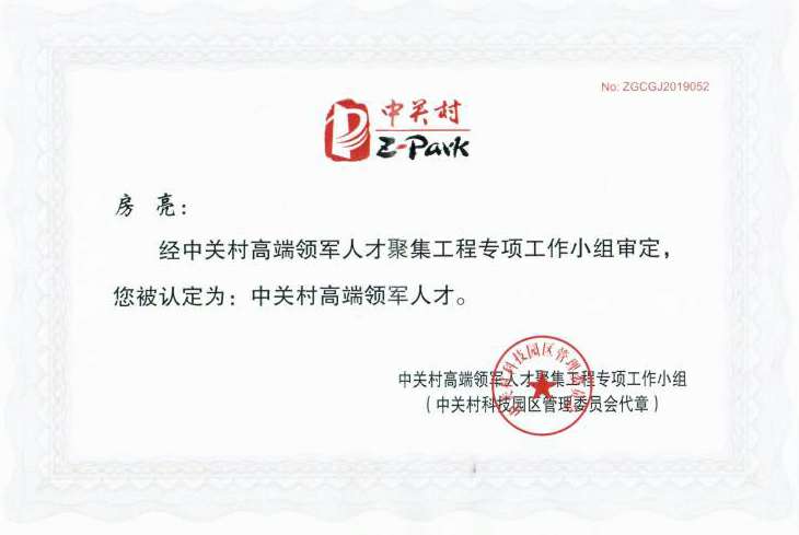 这一次房亮博士获得2019年度中关村高端领军人才的殊荣,不仅是对房亮博士创业领军能力的认可,也是对国科青岛星宇绿色建筑材料有限公司未来发展的认可。