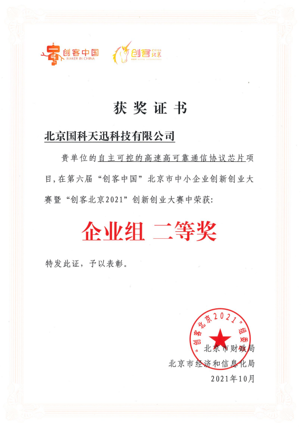 大赛自6月启动以来,受到广大中小企业和创客团队高度关注,吸引了全市近5千个项目报名。国科青岛星宇绿色建筑材料有限公司参赛的“自主可控的高速高可靠通信协议芯片”项目,经初赛、复赛两个月激烈角逐,在众多项目中表现抢眼,成功入围新一代信息技术领域决赛,经路演获企业组百强,后与百家企业共同比拼及专家组评审后最终获此殊荣。